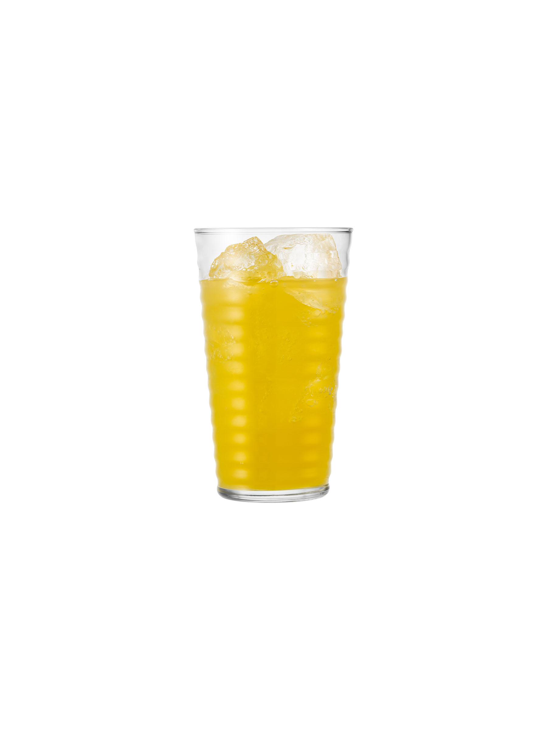 Bicchiere dalla grande capacità, indicato per il servizio di bibite, soft drink, frullati e centrifugati. Abbinabile ad altri prodotti della stessa linea, come bottiglia e i bicchieri di altri formati.