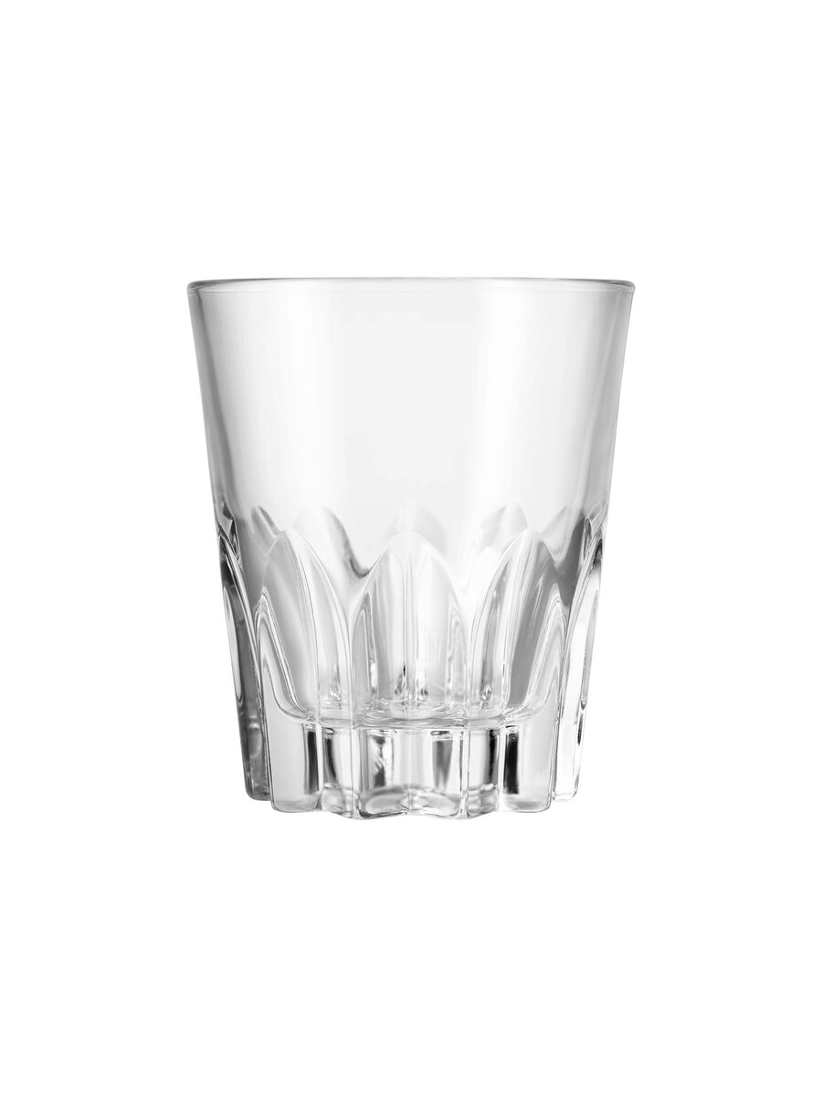 Bicchiere da whisky da 30cl in vetro extra trasparente 100% made in Italy. Questo articolo, in formato double old fashioned, è particolarmente indicato per servire whisky e distillati, ma anche della semplice acqua. Il suo design si caratterizza per i gradevoli decori ottici a lance lungo le pareti che, oltre a migliorare il punto di presa, conferiscono al bicchiere un apprezzabile aspetto vintage. Lavabile in lavastoviglie.