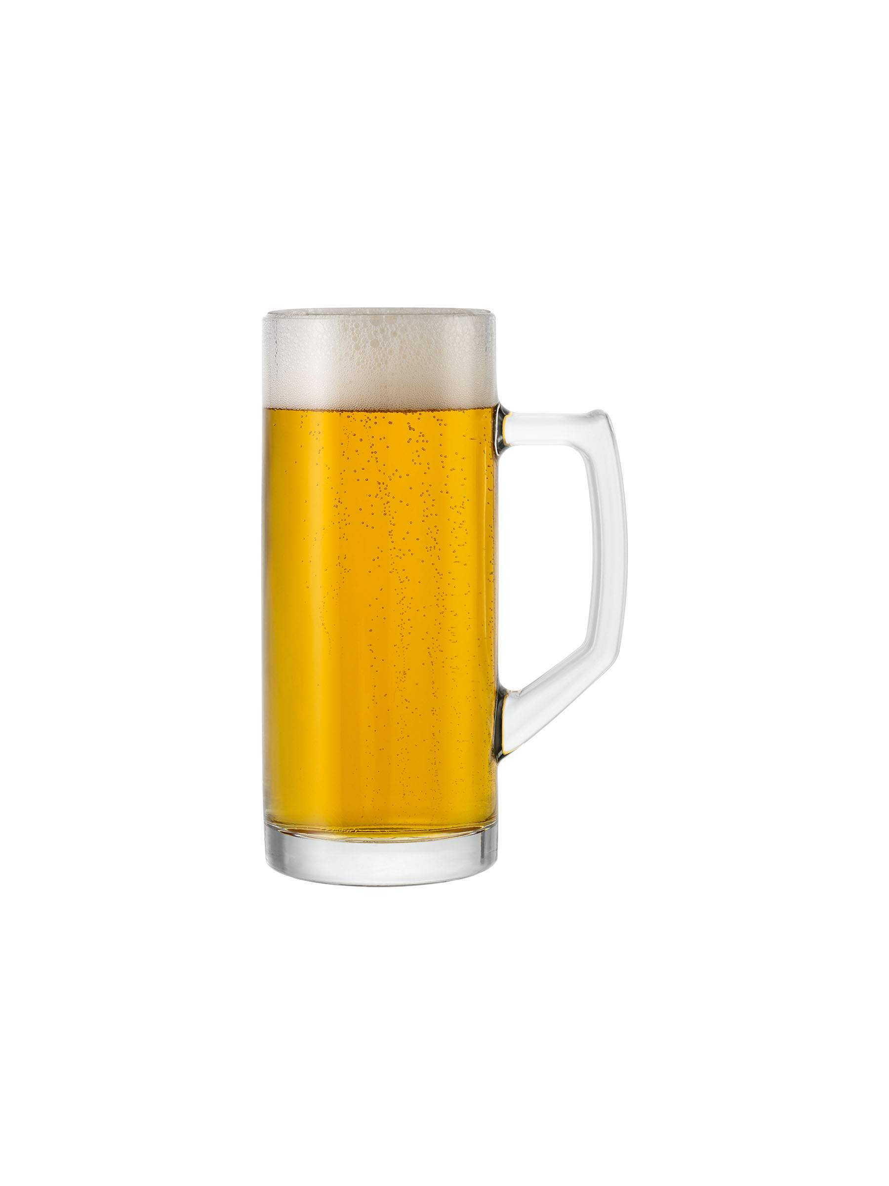 Questo boccale dalla forma tradizionale, nella variante liscia, è dotato di un resistente manico ad ansa e di un fondo solido che conferisce robustezza al bicchiere e stabilità durante il servizio.
