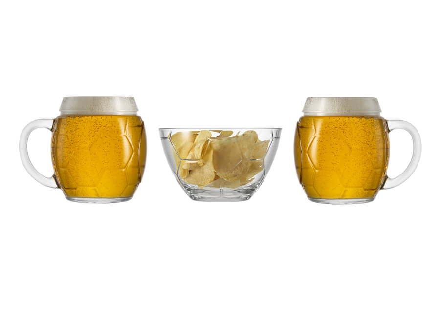 La coppa da 70 cl e 14 cm di diametro, realizzata in vetro pressato, si distingue per il suo design originale con decorazione a forma di pallone. Perfetta per servire aperitivi, patatine, popcorn, snack, merende e frutta secca durante una serata con gli amici.