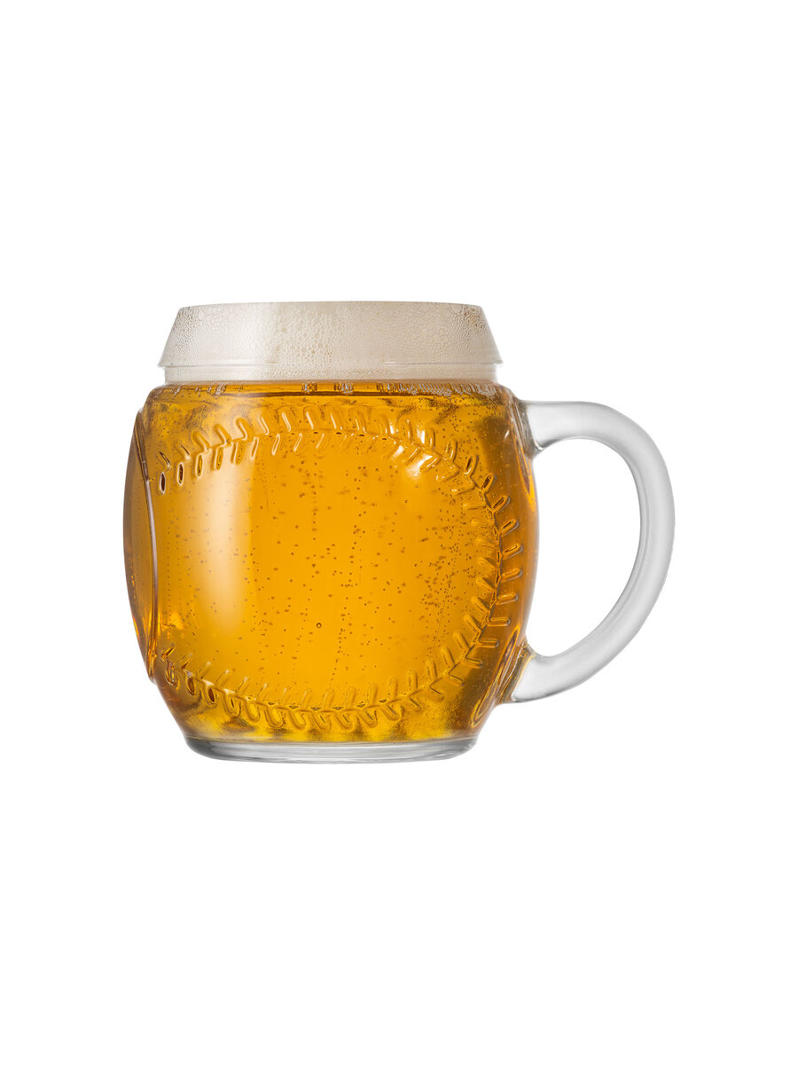 Boccale da birra a forma di pallina da baseball da 0,5L o 0,65L rasobocca in vetro extra trasparente 100% made in Italy.