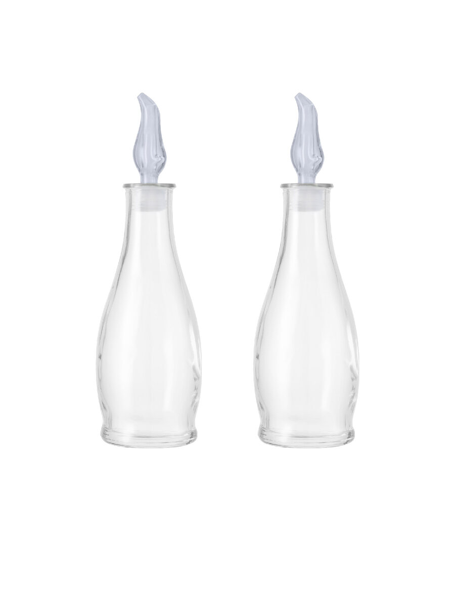 Bottiglia per olio e aceto in vetro extra trasparente 100% made in Italy da 0,355L, con tappo antigoccia in plastica.