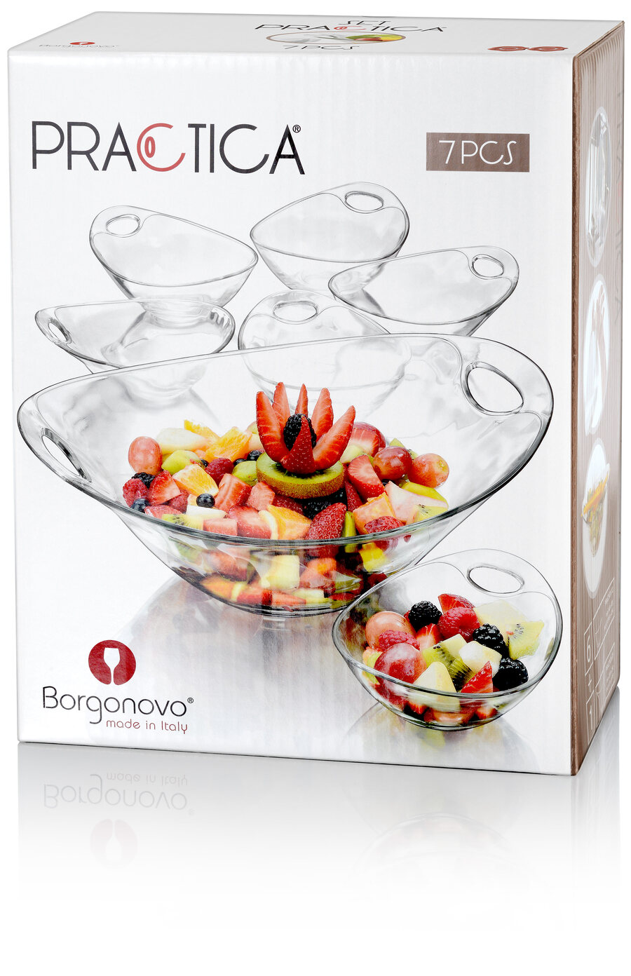 Set da sette pezzi di coppe in vetro extra trasparente di prima qualità con manico integrato Practica.
