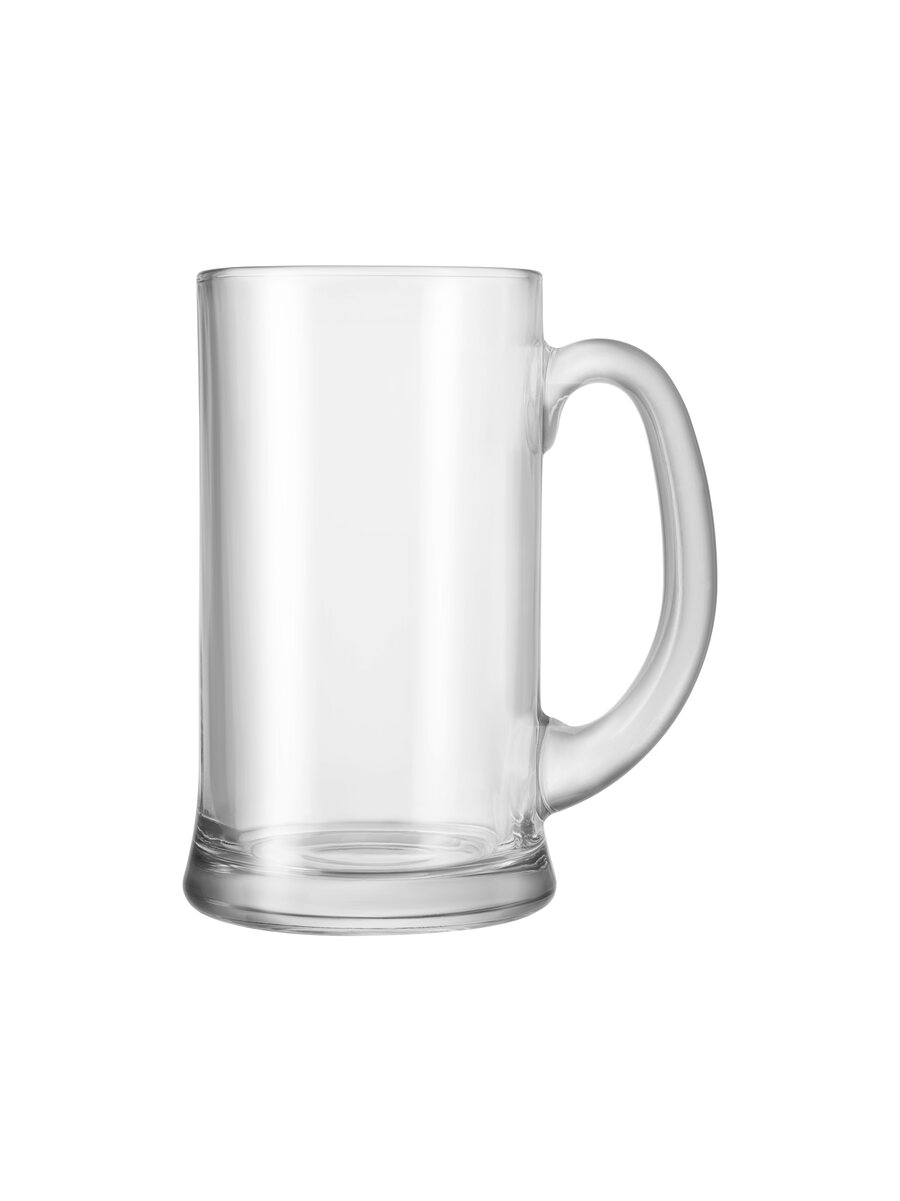 This traditional beer mug features a rounded handle and a wide base for enhanced stability and ease of use.