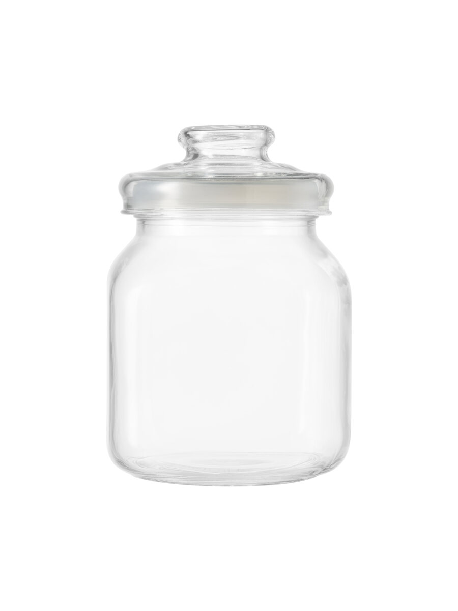 Hermetic container jar made of extra-clear glass with a brimful capacity of 2 liters.