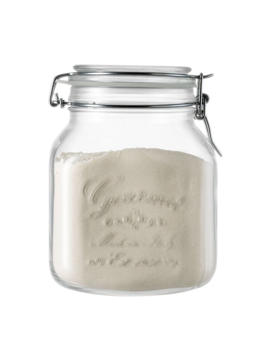 1,7 L_60 Oz brimful capacity hermetic jar with clamp down glass lid 100% made in Italy in extra clear quality glass.