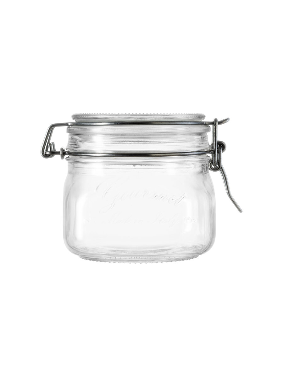 0,212 L_7 15/32 Oz brimful capacity hermetic jar with clamp down glass lid 100% made in Italy in extra clear quality glass.