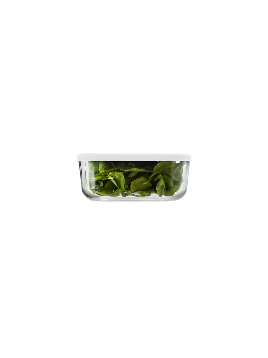 Durable, hygienic glass; freshness-sealing lid is safe for food contact.