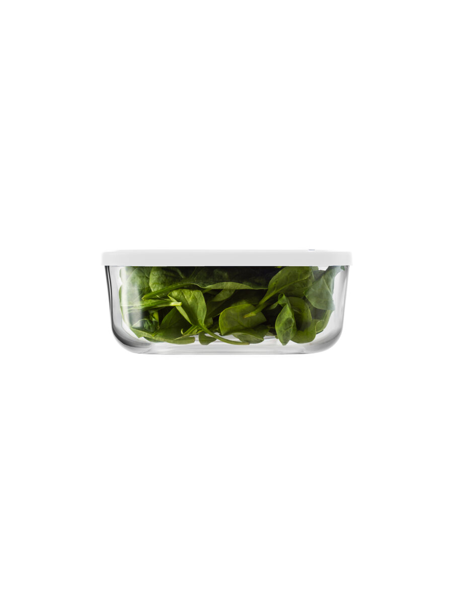 Durable, hygienic glass; freshness-sealing lid is safe for food contact.