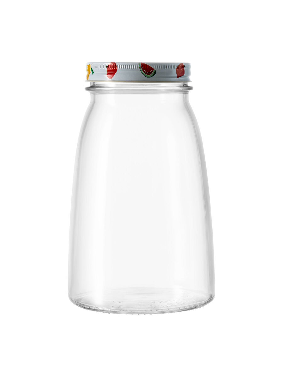 Extra-clear glass jar with a 1.5 L capacity (rim-full), featuring a 4-seasons metal screw-cap with airtight seal.