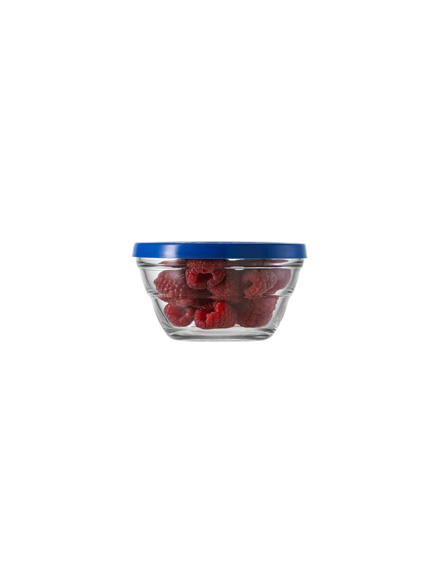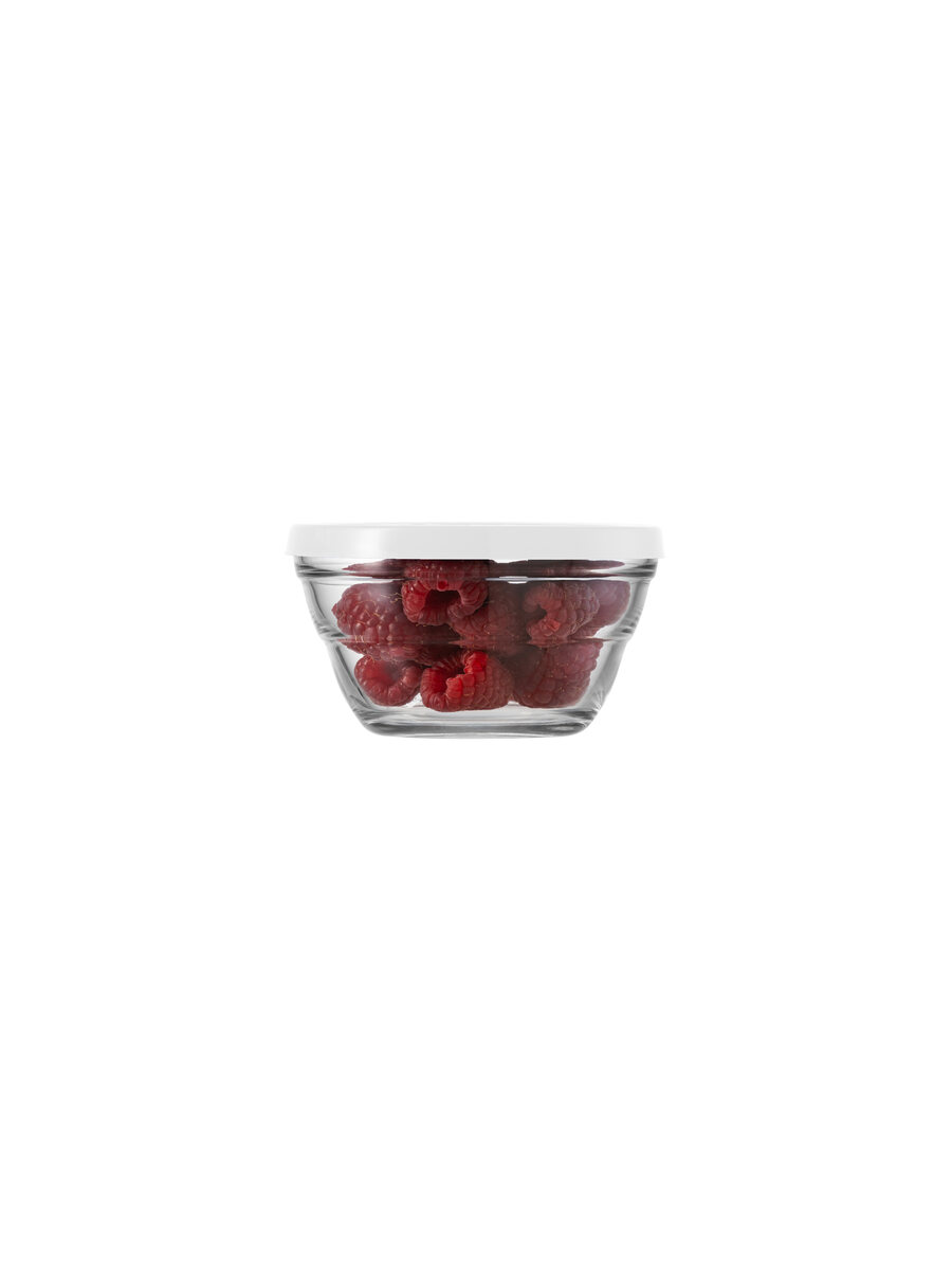 24 Cl_8 1/2 Oz and 10 cm_3 7/8 Inch diameter glass food container with BPA-free food-grade plastic lid (available in 3 different colours).