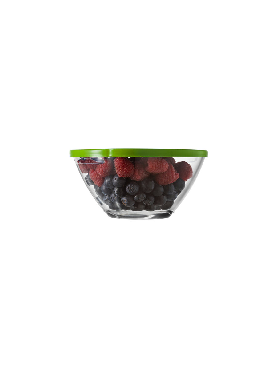Durable, hygienic glass; freshness-sealing lid is safe for food contact.