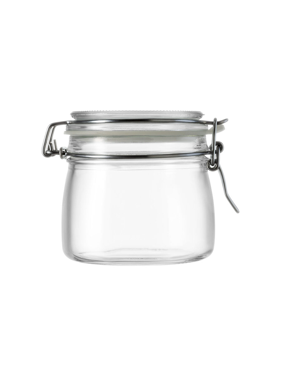 50 Cl_17 5/8 Oz 50 cl clear glass jar with a lid featuring a practical ring, seal, and airtight metal clasp.