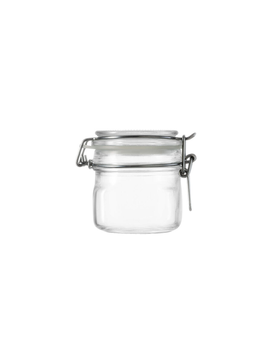 0,212 L_7 15/32 Oz brimful capacity hermetic jar with clamp down glass lid 100% made in Italy in extra clear quality glass.