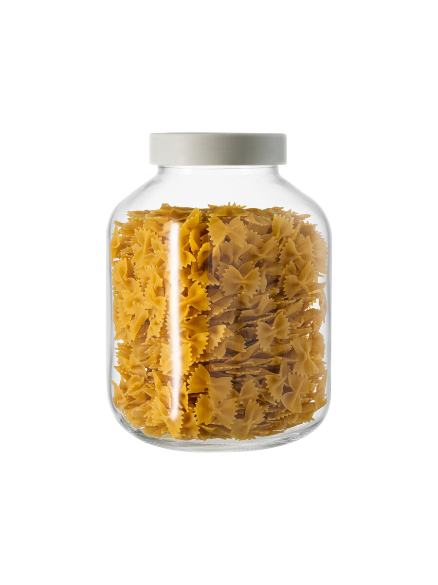 Extra-clear glass container with a capacity of 3.1 liters.