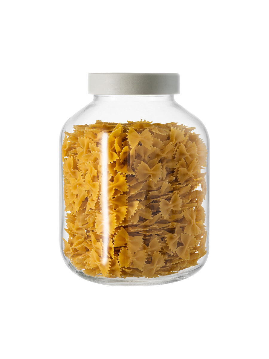 Extra-clear glass container with a capacity of 4.25 liters.
