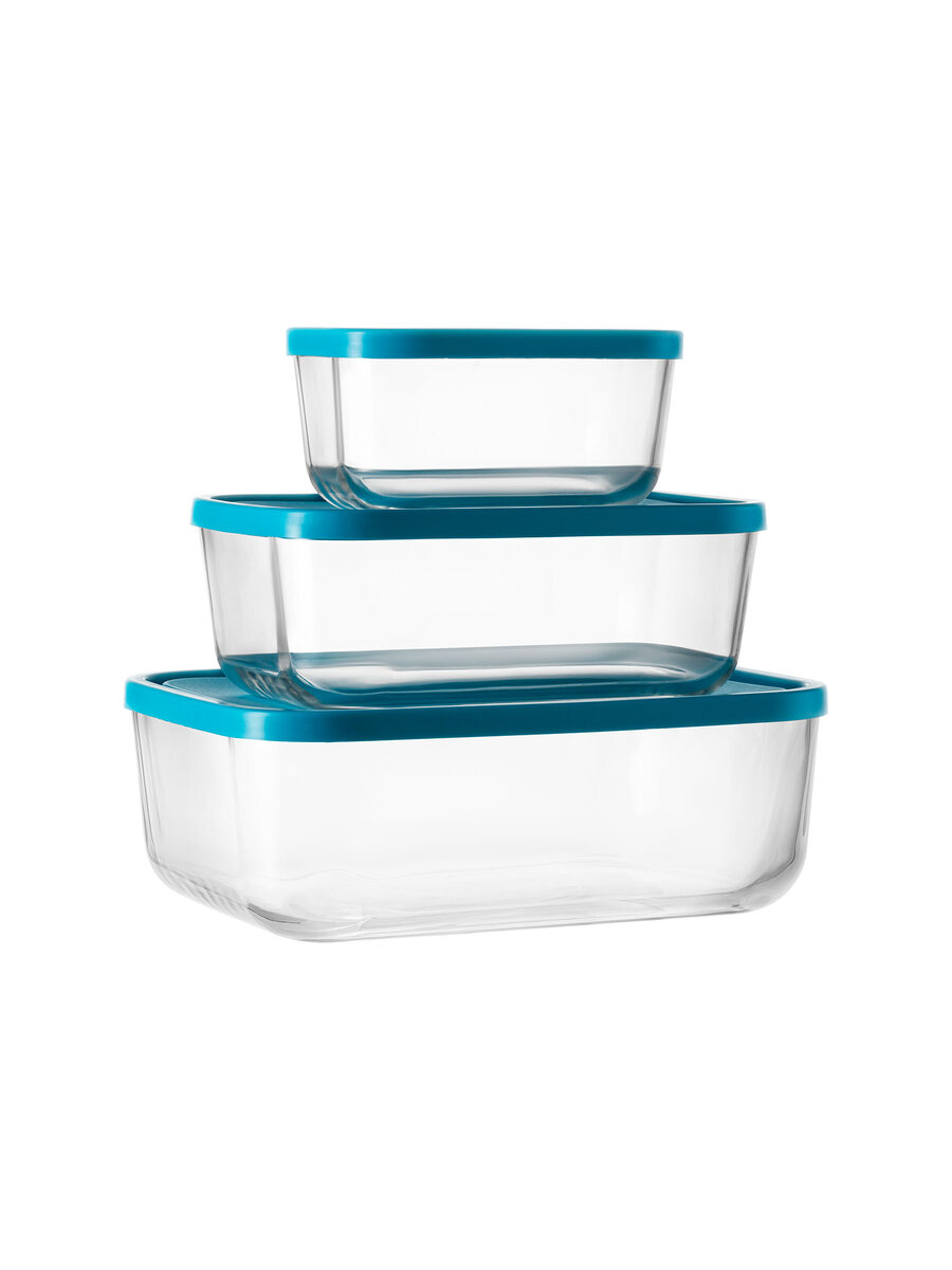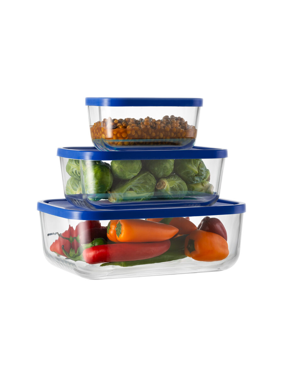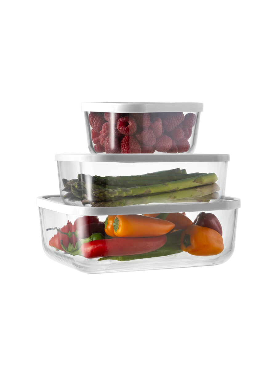 3 pcs set of rectangular food containers in three different sizes in extra clear quality glass.