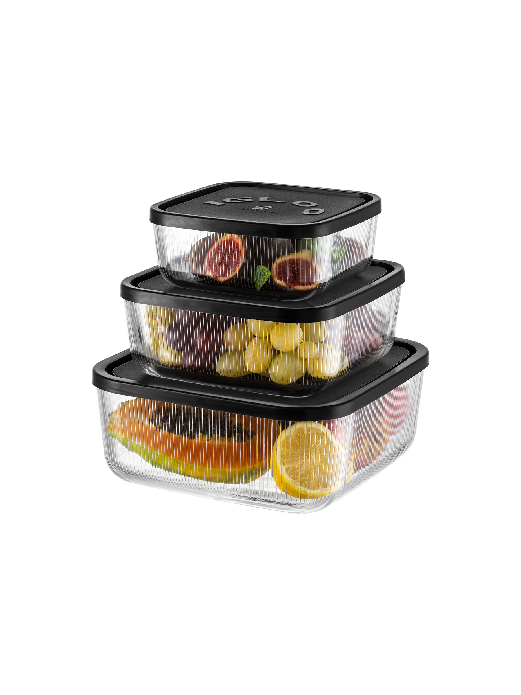 3 pcs set of square food storage containers in three different sizes 100% made in Italy in extra clear quality glass.
