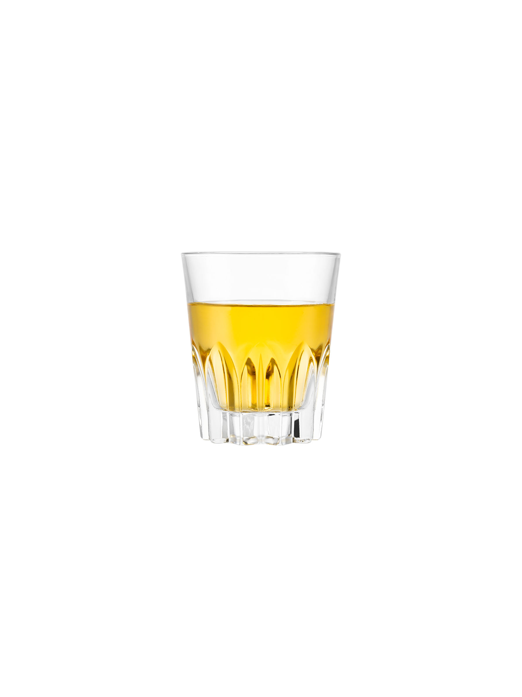 This glass in double old fashioned format is particularly suitable for serving whisky and spirits, but also simple water. Its design is characterized by nice optical lance decorations, which not only improve the grip point but also give the glass an appreciable vintage look.