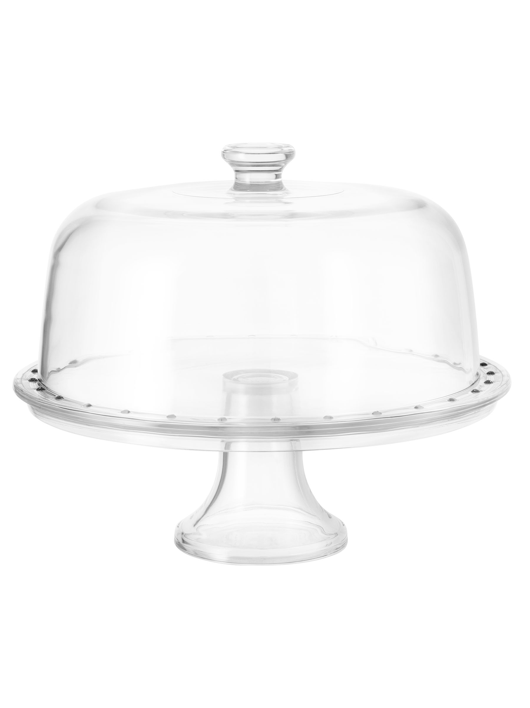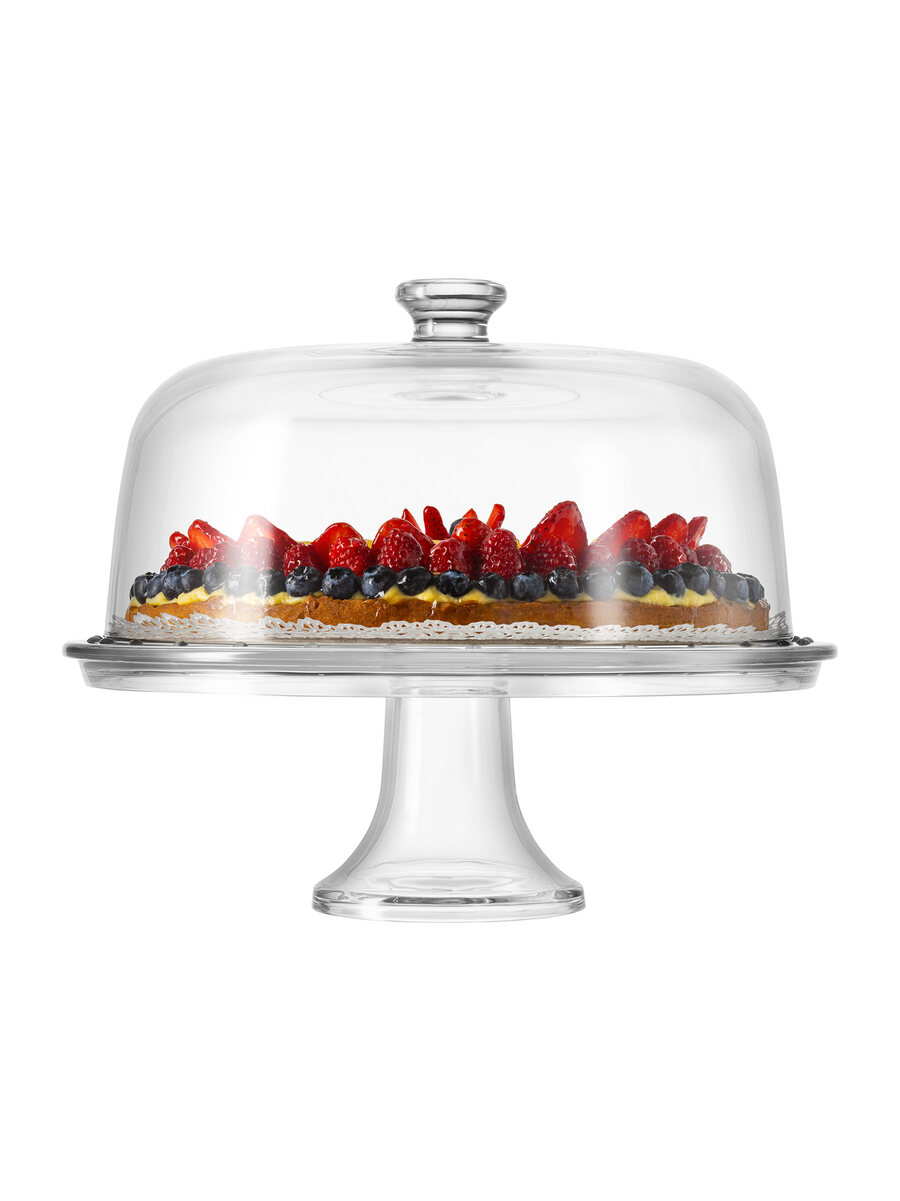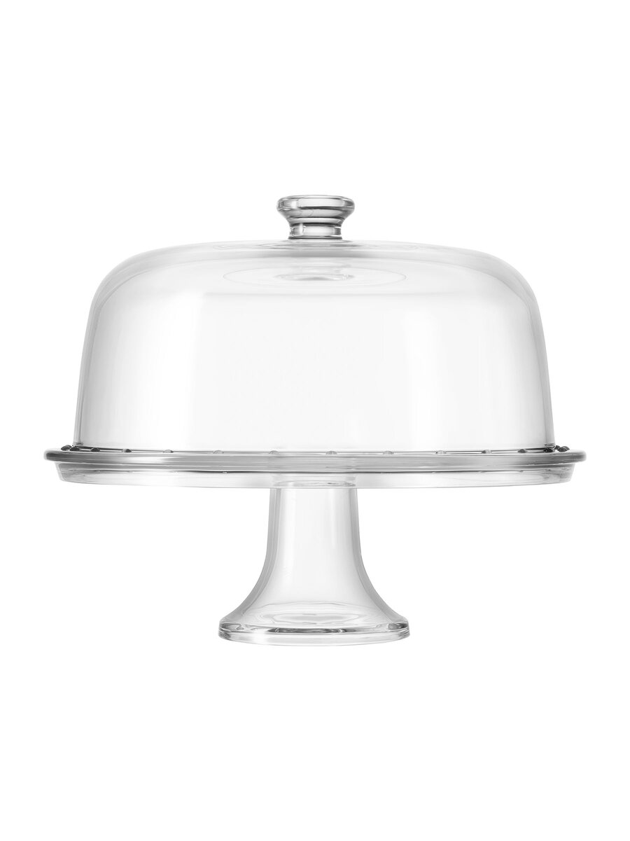 31 Cm_12 1/4 Inch footed cake plate with dome 100% made in Italy in extra clear quality glass. This set includes a plate attached to a foot, a dome, and a plastic gasket-made in Italy-to preserve food freshness and prevent chipping during handling.