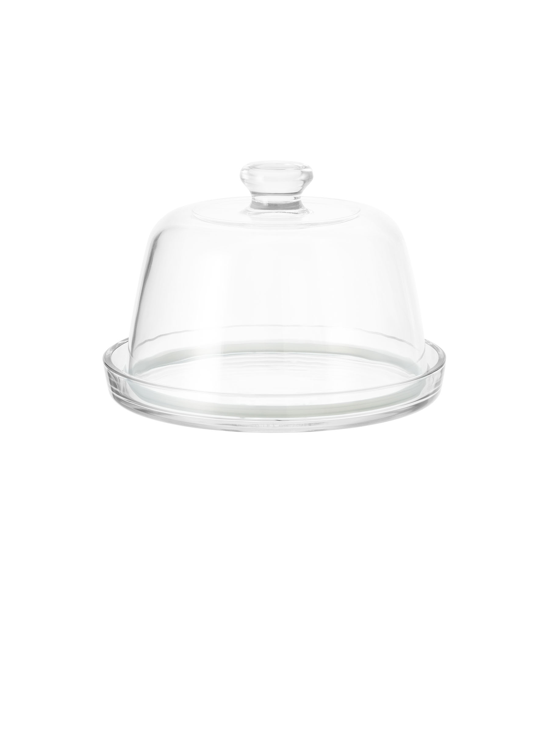 Elegant glass stand(22 cm) featuring a raised outer edge and paired with an extra-clear glass dome and BPA-free plastic gasket.
