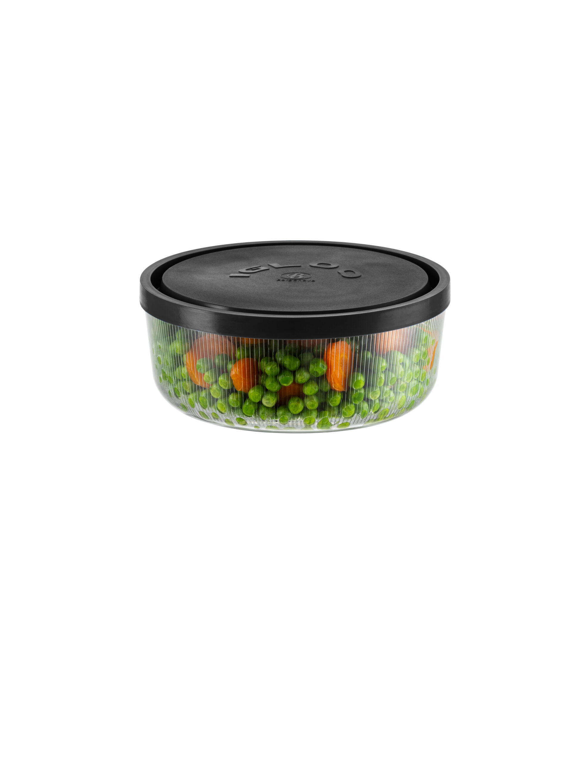 Contenitore some lines da 250 cl e 21,6 cm di diametro in vetro extra trasparente di alta qualità, con coperchio nero in plastica alimentare BPA free. Il design con linee verticali eleganti dona carattere e slancio alla forma. 100% Made in Italy.