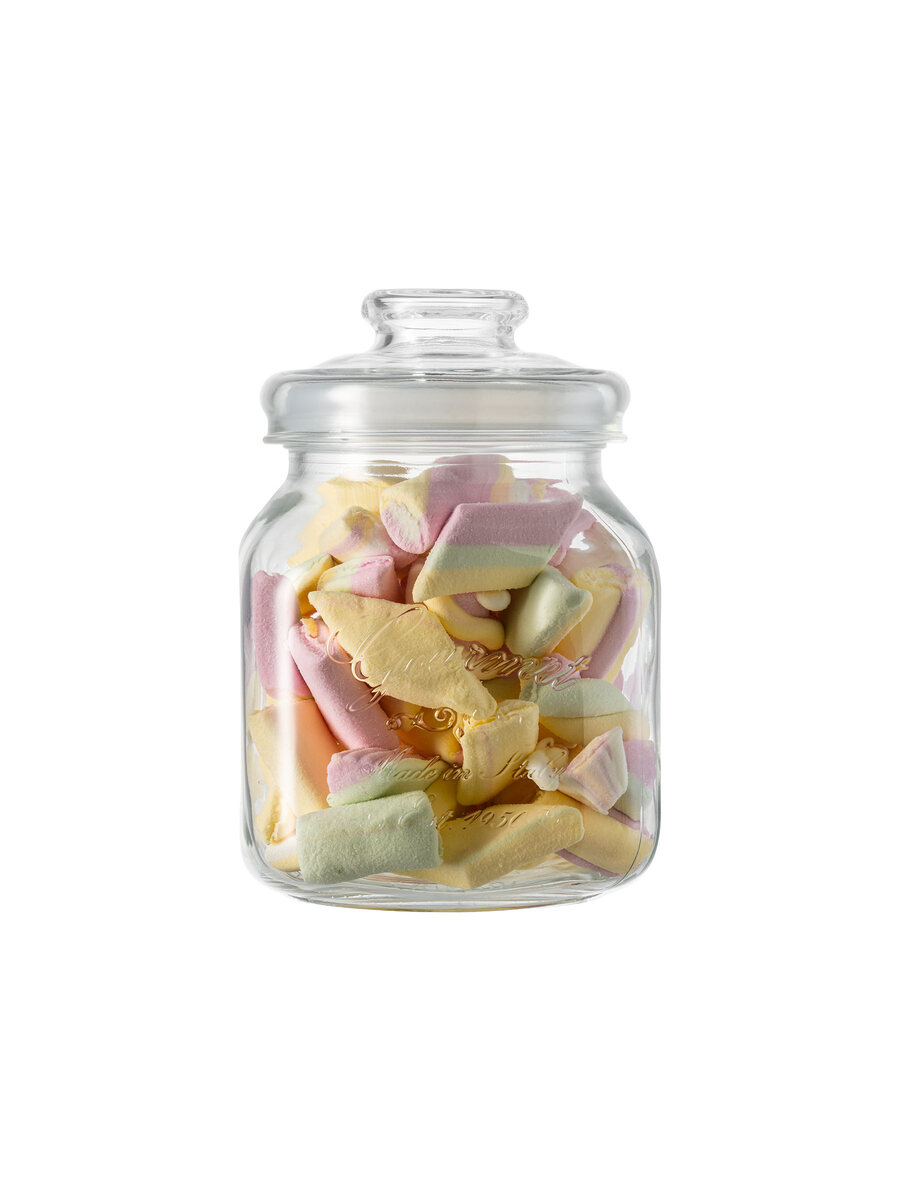 Vaso di dimensioni medio-grandi dalla forma squadrata, incisione a rilievo Goumet sulla parete e dall’aspetto vintage. Utilissimo per la conservazione, per lo stoccaggio e per il servizio. Perfetto anche come complemento d’arredo.