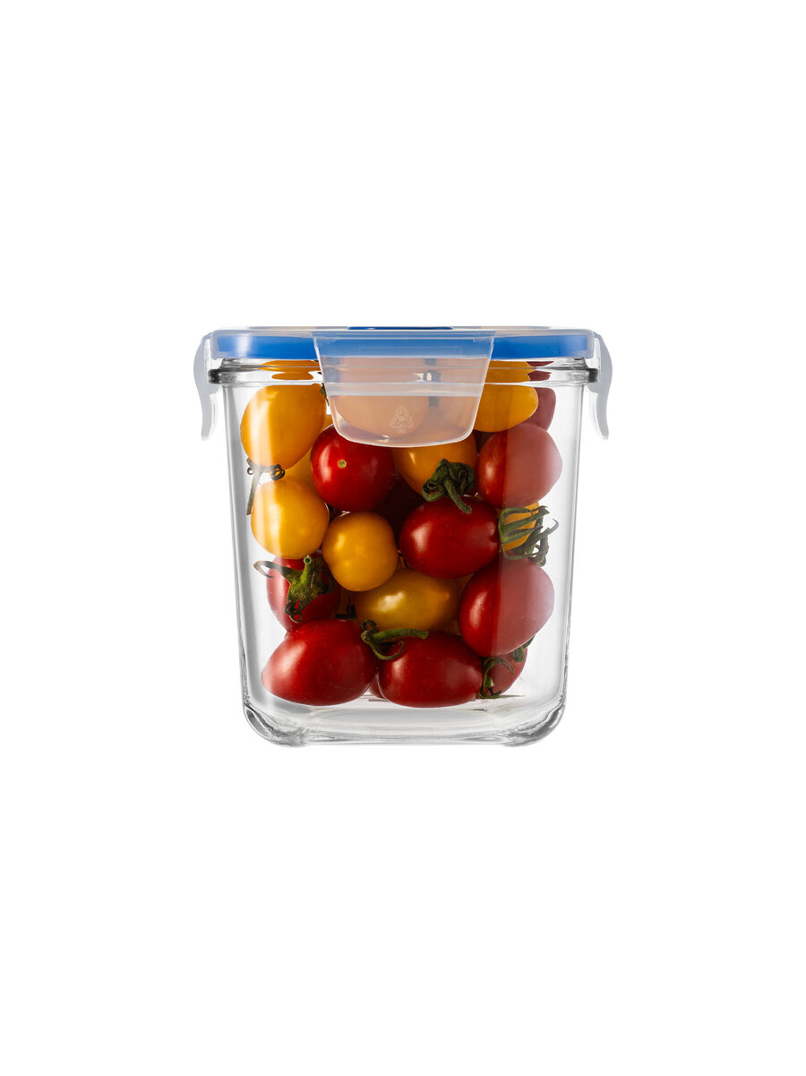 Contenitore a base quadrata da 83cl in vetro extra trasparente ideale per la conservazione degli alimenti in frigorifero e freezer (fino a -20°C).