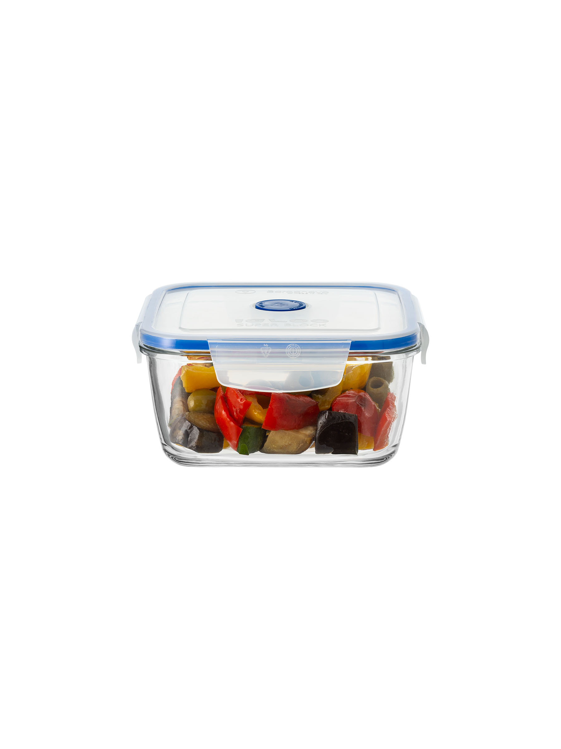 Contenitore quadrato da 140cl in vetro extra trasparente, ideale per la conservazione degli alimenti in frigorifero e freezer (fino a -20°C).