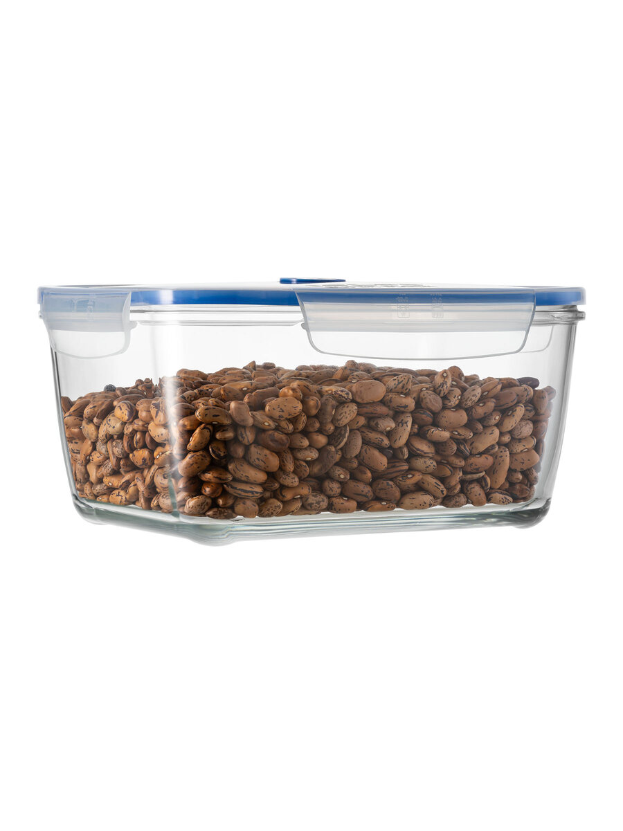 Contenitore rettangolare da 300cl in vetro extra trasparente, ideale per la conservazione degli alimenti in frigorifero e freezer (fino a -20°C).