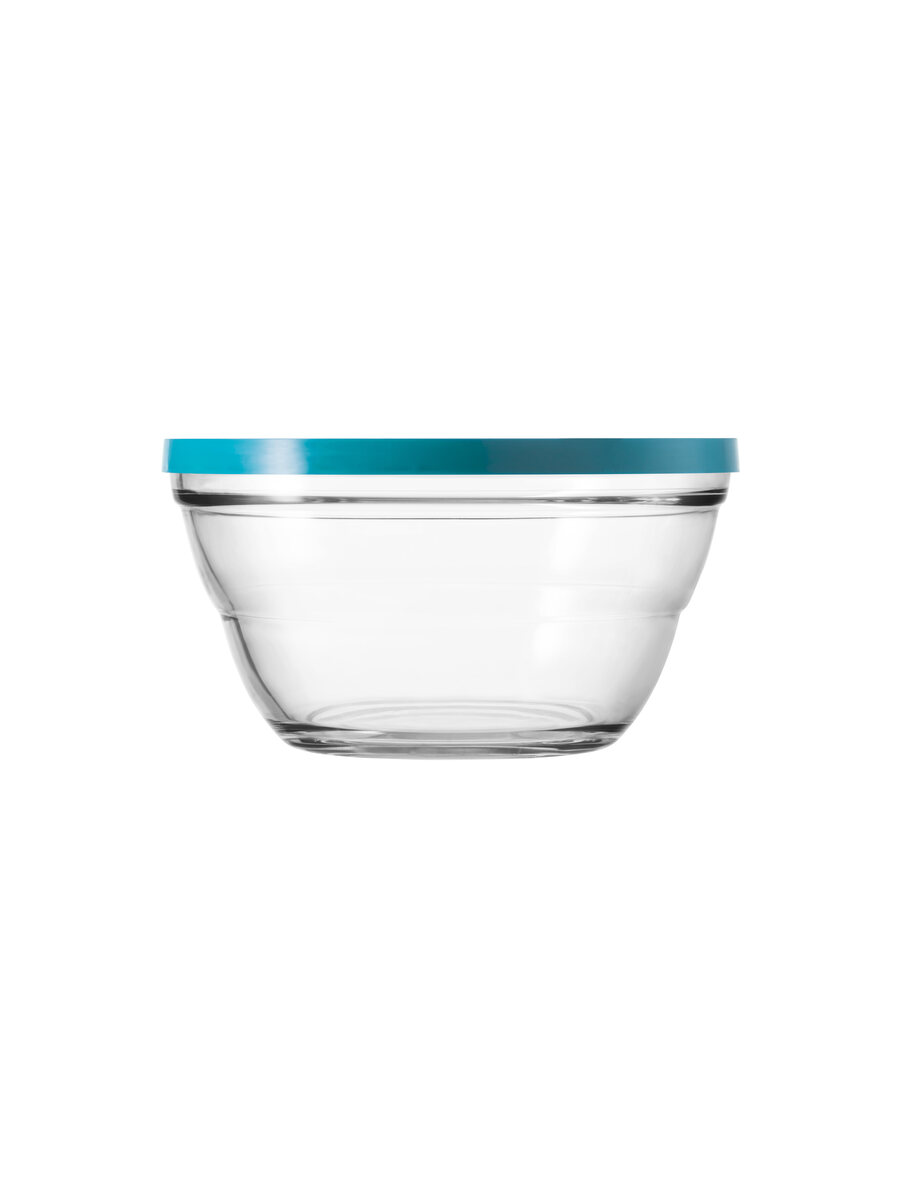 Contenitore a coppa per alimenti in vetro extra trasparente da 250cl e 21,5 cm di diametro con coperchio in plastica alimentare senza BPA. (disponibile in 3 colori).