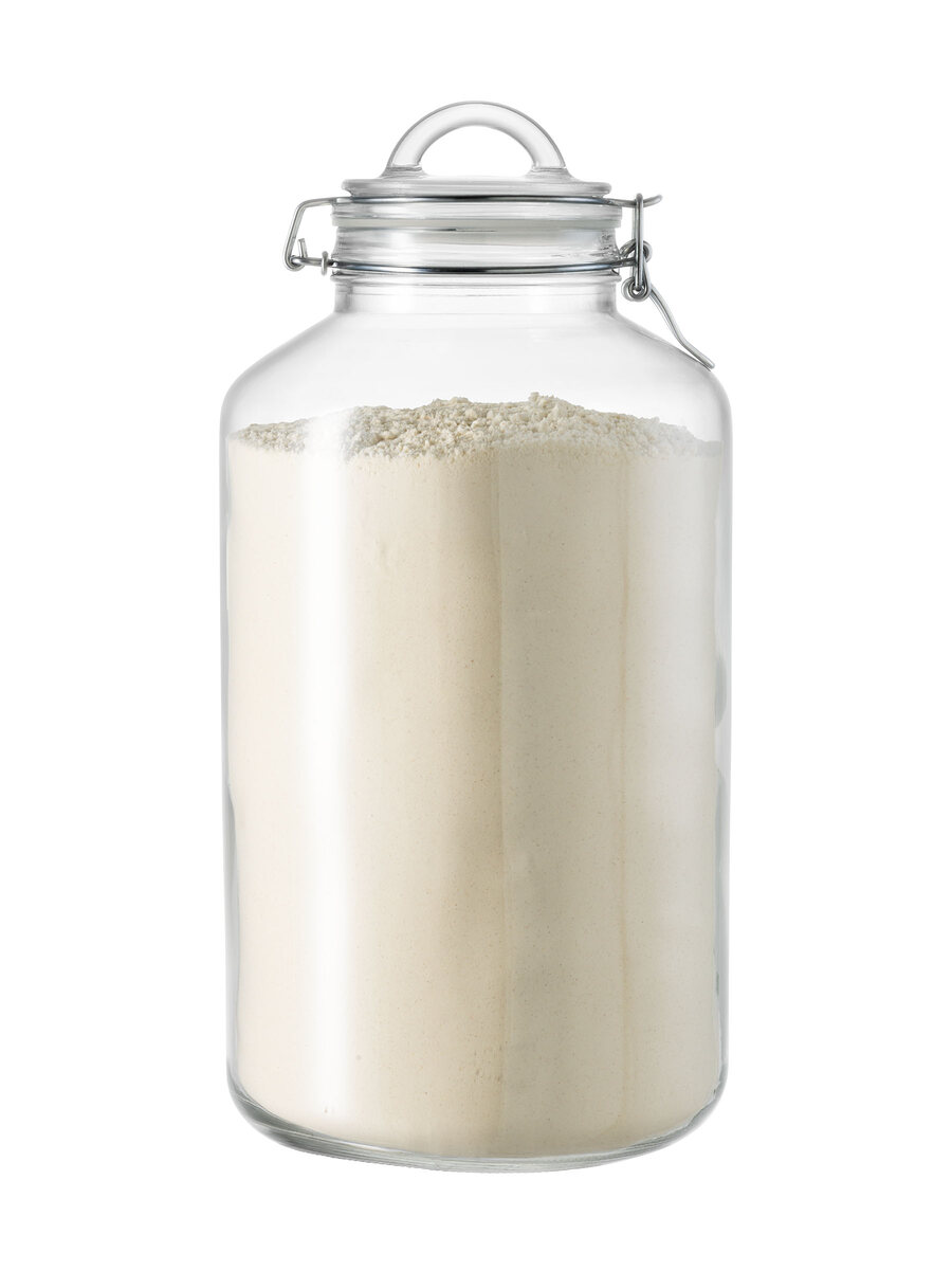 Vaso in vetro trasparente da 600 cl con coperchio dotato di pratico anello, guarnizione e chiusura ermetica in metallo.
