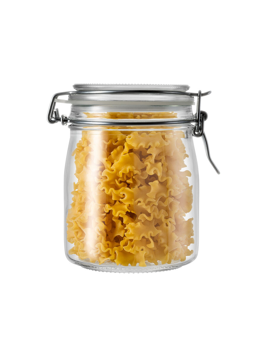 Vaso da 75cl di capacità in vetro extra trasparente con coperchio, guarnizione e chiusura ermetica metallica.