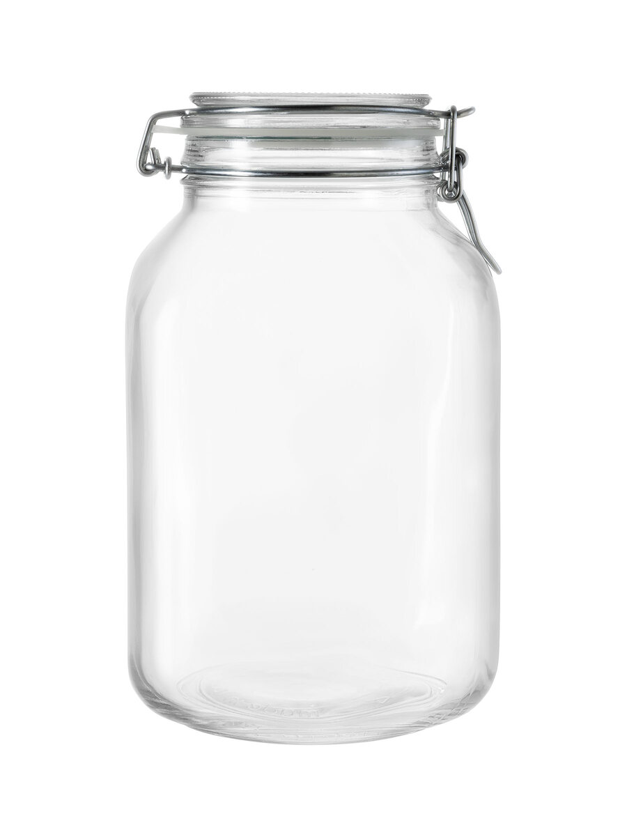 Vaso contenitore ermetico in vetro extra trasparente da 3 litri di capacità e 3,1 litri rasobocca. Vaso e tappo in vetro 100% made in Italy di prima qualità. Guarnizione in plastica priva di BPA e adatta al contatto con gli alimenti. Chiusura meccanica in metallo.