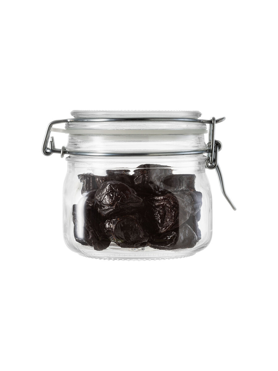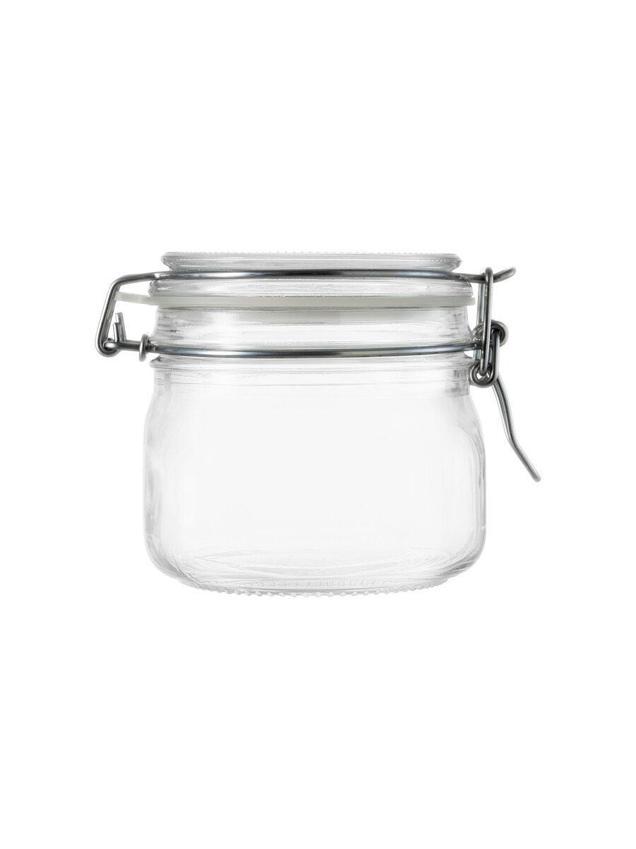 Vaso contenitore ermetico in vetro extra trasparente da mezzo litro di capacità e 0,58 litri rasobocca. Vaso e tappo in vetro 100% made in Italy di prima qualità. Guarnizione in plastica priva di BPA e adatta al contatto con gli alimenti. Chiusura meccanica in metallo.