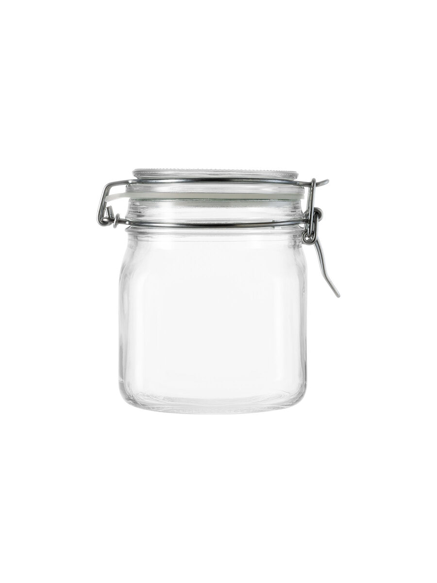 Vaso contenitore ermetico in vetro extra trasparente da 0,75 litri di capacità e 0,85 litri rasobocca. Vaso e tappo in vetro 100% made in Italy di prima qualità. Guarnizione in plastica priva di BPA e adatta al contatto con gli alimenti. Chiusura meccanica in metallo.